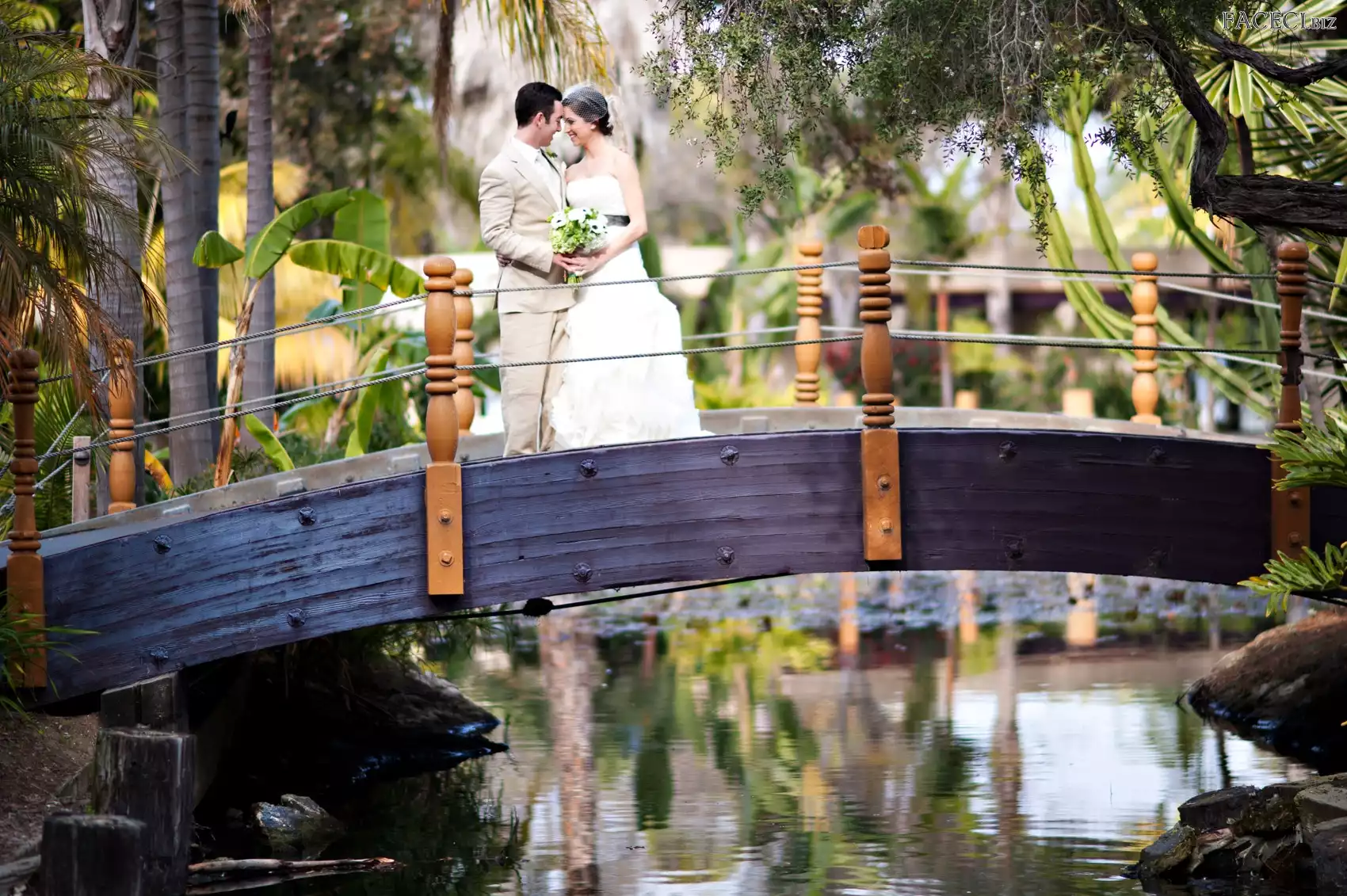 Drzewa, Woda, Młodych, Para, Mostek - faceci.biz